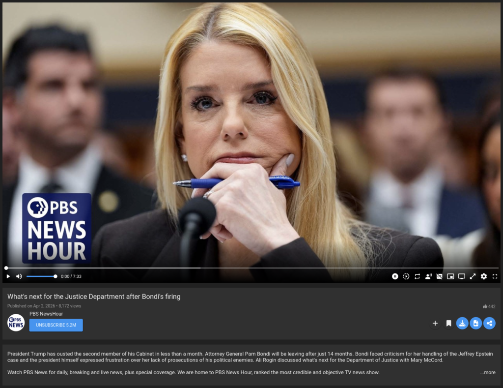 PBS News asks, “What’s next for the Justice Department after Bondi’s firing”