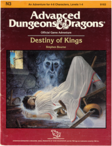The adventure module we played was N3 Destiny of Kings which, by today’s standard, had a kind of Game of Thrones feel to it (minus the dragons, sex, and white walkers). The good king had just been killed in a hunting accident. The royal prince was away on a holy pilgrimage, his whereabouts unknown. The prince’s uncle was making a play for the throne. The characters needed to find the prince and return him safely to the kingdom in time for his coronation. All very exciting stuff for a paladin knight, but there were many quandaries too. For instance, if the party had decided to sneak into an area, I would be like, “Paladins don’t sneak! We boldly charge into the fray because might is right, and honor, and so forth!” So it was challenge to figure out how to square that circle.