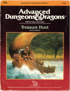 By the time we completed The Keep on the Borderlands, we were looking forward to playing something more interesting than another basic dungeon crawl, and I had already found N4 Treasure Hunt at a local book store. If I remember correctly, this was the adventure we added a new friend to our group (Gisele), and I think this was my first attempt at DMing. I can’t remember if I was any good or not, but I’m sure I thought I sucked at the time. Someday, I might have to ask the rest of the group if they remember what they thought.