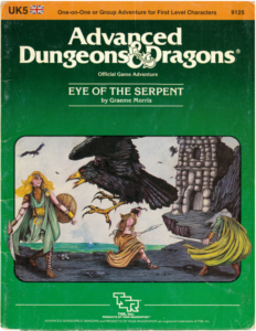 Transitioning from our previous adventure was very easy. After dropping off a non-player character (NPC) that was rescued during Treasure Hunt, the opening sequence of UK5 Eye of the Serpent had our party scooped up by a pair of rocs and deposited in a nest at the top of Hardway Mountain. The rest of the adventure basically followed our characters getting off the mountain.